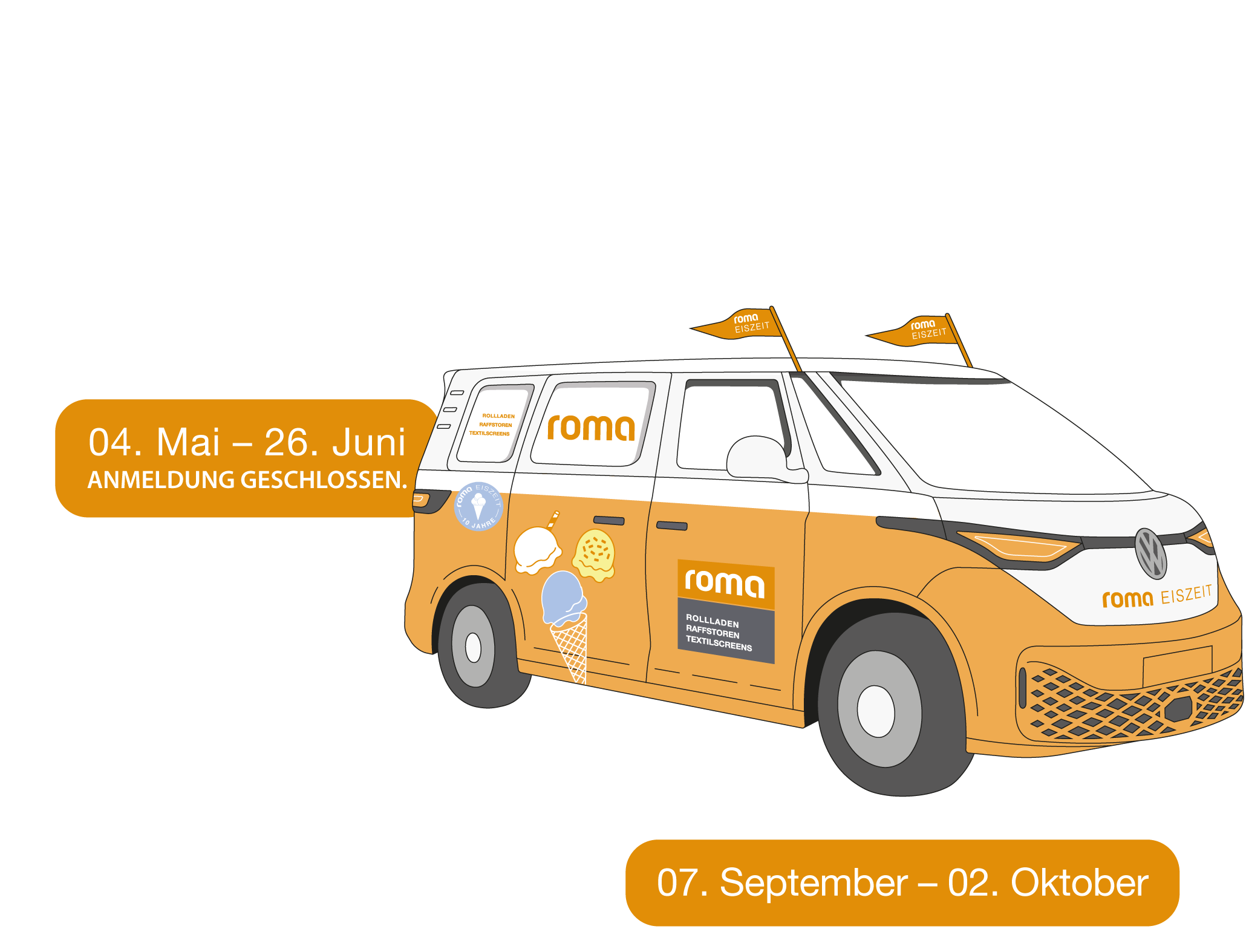 Mit der Eiszeit kommen wir auch in diesem Jahr direkt zu euch ins Büro und tauschen für einen schönen gemeinsamen Moment das ROMA-Kompendium und Sonnenschutzberatungskompetenz gegen Waffel, Becher und Eis.